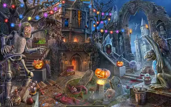 ジャックの城の不吉な庭は、色とりどりの花輪や、変わったハロウィーンのマネキンで飾り付けられている。見た目が怪しげなお菓子からも美味しそうな匂いがしている。これは何だ?巧妙な罠か、それとも安全なハロウィーンを保証する楽しいしかけなのか?